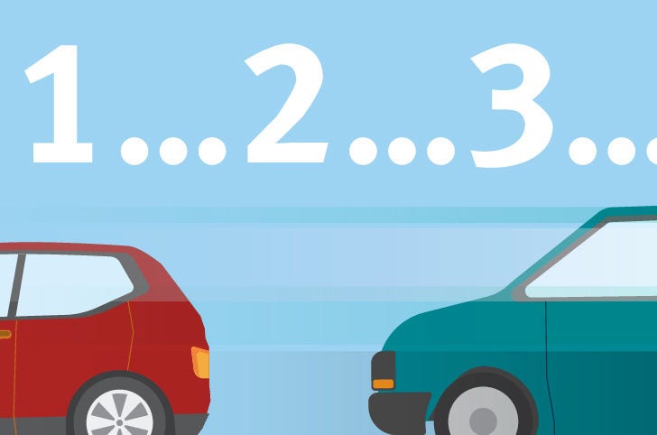 Zählt gemeinsam die Autos, die ihr während der Fahrt überholt.